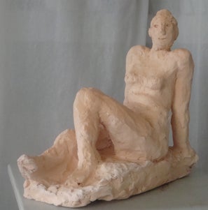 Lotte Kjøller's sculptures, created between 1995 and 2008, are all, as is the case with the paintings, modeled on living models. The material here is stone reins with chamotte. Subsequently, the sculptures are burned, and occasionally glazed several times with glaze according to the artist's own recipe. Several sculptures, i.a. "The ponderer" in burnt clay with chamotte, 47 x 21 x 17 cm, expresses a marked sensuality combined with contemplation. "